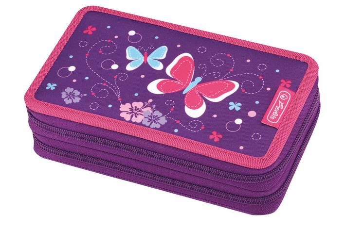 Penál školní 2-patrový motýl fialový PLNĚNÝ HERLITZ (školní pouzdro 2-patra PLNĚNÉ)
