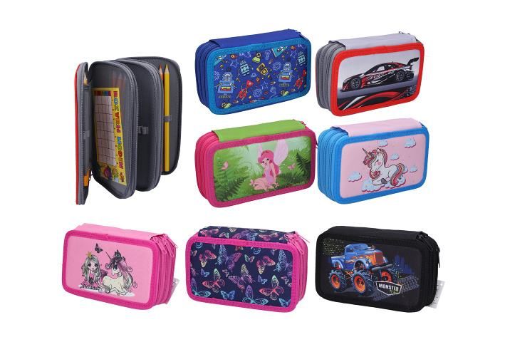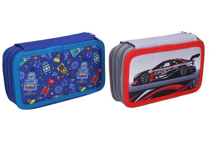 Penál třípatrový s výbavou - textil
