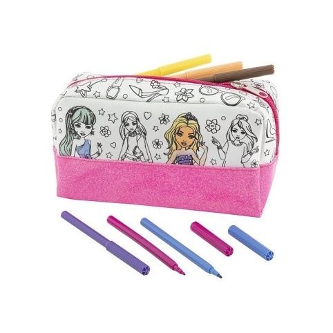 Penál vybarvovací na zip Besties – balení obsahuje penál + 6 fixů permanentních určených k vybarevní penálu dle vlastní inspirace. Lze použít jako kosmetickou taštičku.