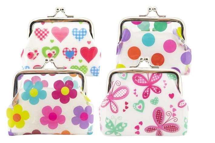 Peněženka dívčí plast/kov 9x8cm 4 barvy v sáčku