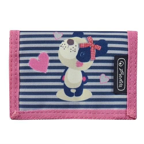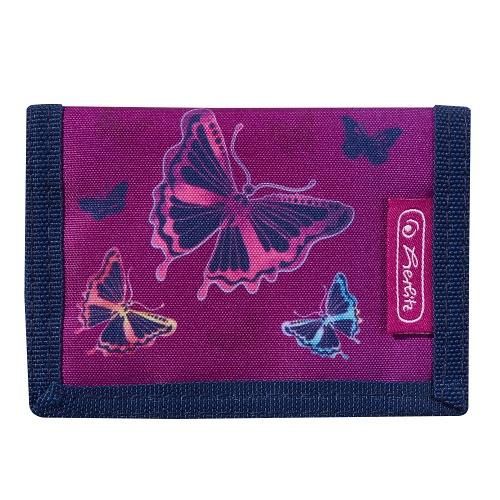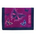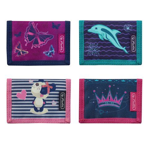 11,5 x 8 x 2 cm, kroužek na klíče, zapínání na suchý zip, kapsička na mince, materiál: polyester, mix motivů: Třpytivý motýl, Delfín, Panda, Korunka