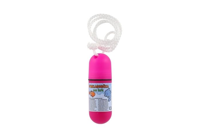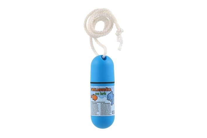 Plastová pokladnička na krk na drobné peníze, klíč a jiné drobnosti. Ideální na ven, výlety či na koupaliště.