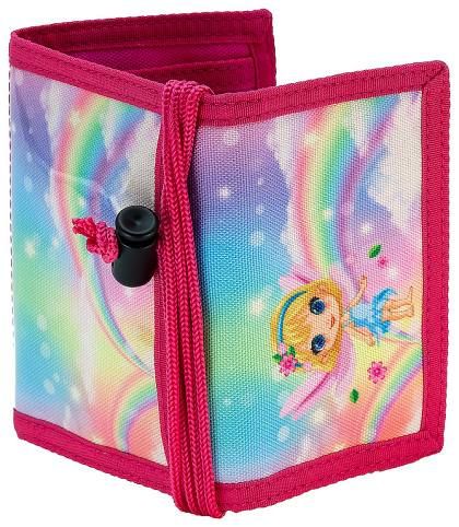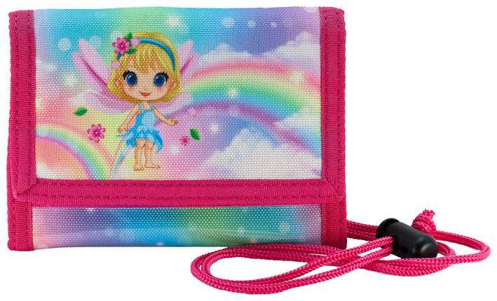Peněženka se zavře suchým zipem a zavěsí na krk látkovou šňůrkou.