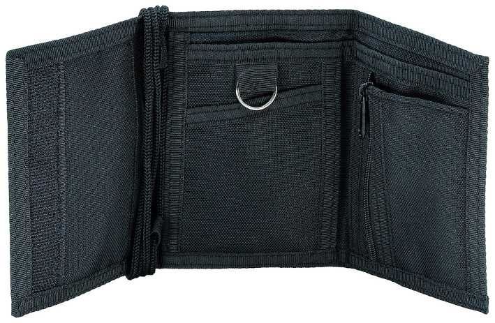 Peněženka se zavře suchým zipem a zavěsí na krk látkovou šňůrkou.
