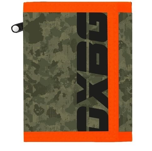 Praktická textilní peněženka na suchý zip. Vzadu je uzavíratelná kapsička na drobné, uvnitř jedna přihrádka na bankovky, šest kapsiček na karty a jedna průhledná kapsa.