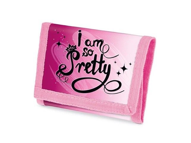 Dětská růžová textilní peněženka s textem I am so Pretty. Peněženka má přihrádku na bankovky, mince, kapsičku vhodnou například na jízdenky a také kapsičku s průhledným okýnkem o velikosti kreditní karty. Peněženka má kovový kroužek na zavěšení. NÁVOD NA ÚDRŽBU: Čistit pouze navlhčeným hadříkem ve vodě s trochou saponátu. Textilní části je možno zbavit mechanického znečištění lehkým kartáčováním. Zásadně nepoužívat k čištění ředidel, mechanicky čistících prášků nebo agresivních čistících přípravků. Výrobky zásadně neprat v pračce. Při promočení nechat pozvolna vysušit při pokojové teplotě. Výrobek se nesmí sušit v kontaktu ani bezprostřední blízkosti otevřených tepelných zdrojů či sušičce prádla. Uvedená cena je za 1 ks. Peněženka je balená v obalu.