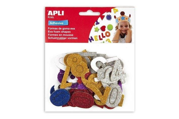 Pěnová guma Eva sheets číslice se třpytkami samolepící různé barvy APLI