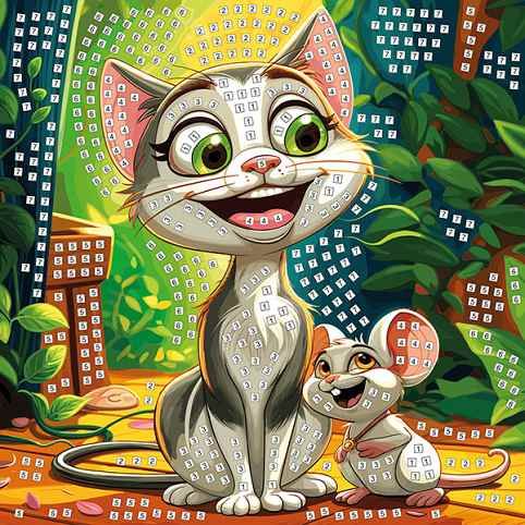 Pěnová mozaika třpytivá samolepicí – Kočka A Myš 27x29 (27 × 29 cm)