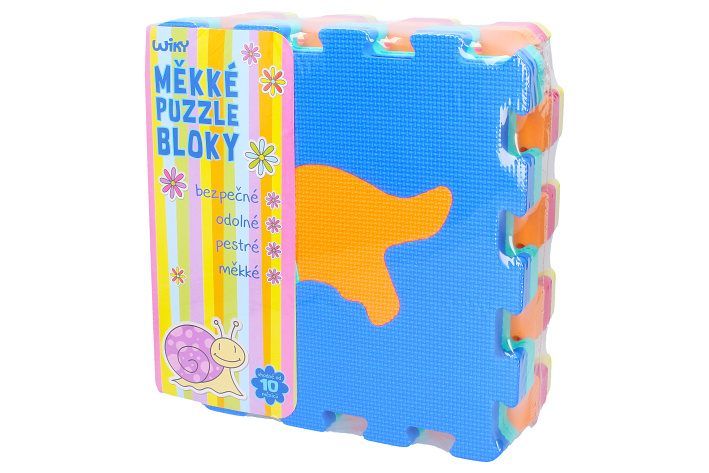 Měkké bloky-puzzle s obrázky dinosaurů. Velikost 32 x 32 cm. Obsahuje 10 ks.