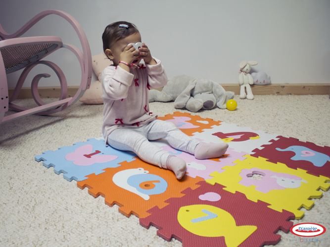 Pěnové puzzle s vroubkovaným povrchem a vyjímatelnými částmi jsou