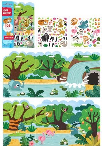 Pěnové samolepky pro opakované použití. Set krásných samolepek s motivem džungle. Samolepky drží na hladké ploše bez lepidla. Lze je tedy opakovaně používat a přelepovat na hrací ploše nebo na různá hladká místa. Děti rozvíjí jemnou motoriku a zároveň si užijí plno zábavy. Skvělá aktivita pro vytváření si vlastního zábavného světa. Balení obsahuje 103 pěnových samolepek pro opakované použití a oboustrannou rozkládací hrací plochu.