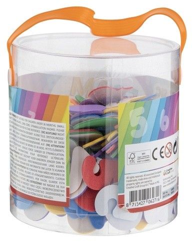 Pěnové samolepky písmena/čísla v praktickém plstovém kyblíku.