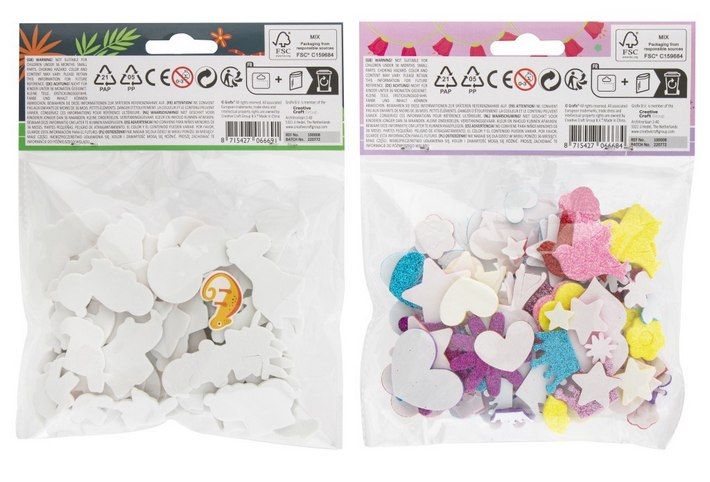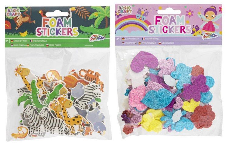 Pěnové samolepky v sáčku zvířátka, srdíčka.