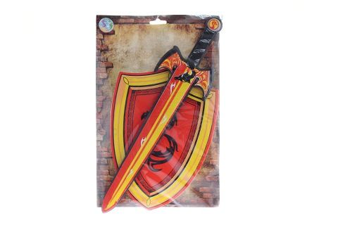 Sada meče se štítem. Pěnový materiál. Rozměry meče 54x14x1,5 cm. Rozměry štítu 35x24,5x1 cm. Baleno v sáčku. Rozměry balení 30x48x3 cm. Věk 3+