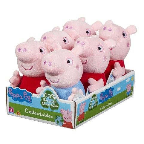 Extra měkký 15 cm plyšáci ze 100% recyklovaných materiálů (tkanina, výplň i nit). Assort 2 plyšáku: Peppa, George pro nejmenší děti od narození (0+).