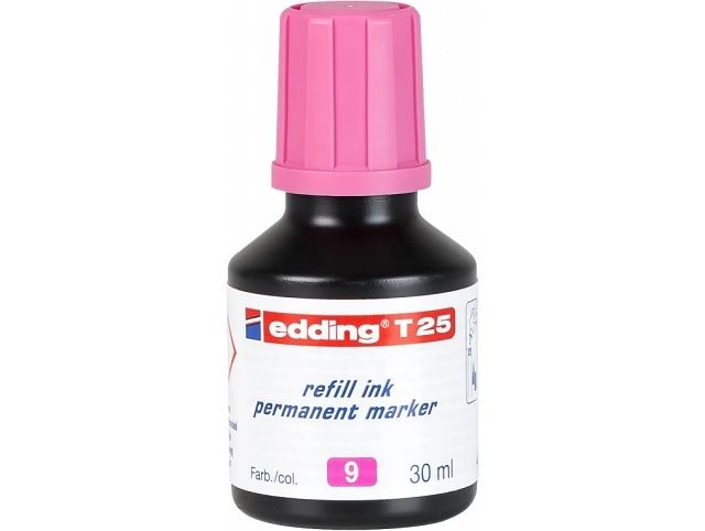 Permanentní inkoust EDDING T25, ružový. Vhodný témer do všech permanentních popisovacu EDDING. Lahvicka obsahuje 30 ml inkoustu. Šetrí náklady na nové popisovace a doplnováním inkoustu se snižuje množství produkovaného odpadu.
