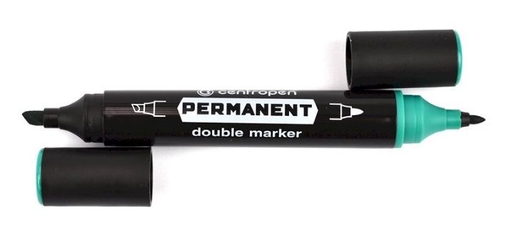 Permanentní popisovač Centropen Double 1666/1 , dva hroty, zelený