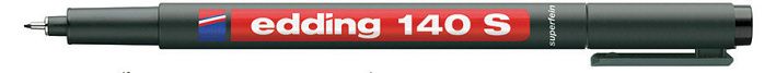 Vysoce neprůhledný inkoust odolný proti vodě - vhodný pro psaní na fólie, sklo, umělou hmotu a kabely. Inkoust lze smazat pouze lihem. Hrot v kovové objímce. Stopa 0,3 mm.