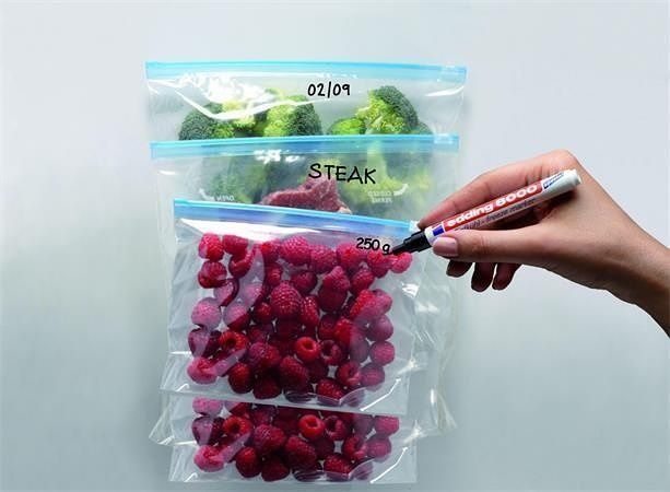 Permanentní popisovač vhodný pro popis uskladněných potravin v lednici nebo mrazáku.