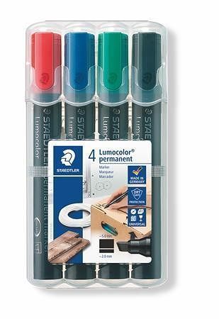 Permanentní popisovač "Lumocolor 350", sada, 4 barvy, klínový hrot, STAEDTLER