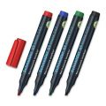 Permanentní popisovač s modrým plastovým tělem. Uzávěr v barvě náplně. Rychle zasychá, vydrží i 2-3 dny bez víčka. Inkoust odolný vůči světlu i vodě. Víčko s praktickým klipem.Seříznutý hrot, šíře stopy 1 nebo 4 mm.