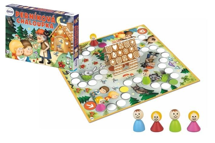 Klasická desková hra pro nejmenší hráče na motivy oblíbené pohádky o Perníkové chaloupce. Hráči se s dřevěnými figurkami pohybují po lese plném dobrodružných úkolů tak, aby se co nejdříve dostaly do cílového políčka. Cestou plní jednoduché úkoly.