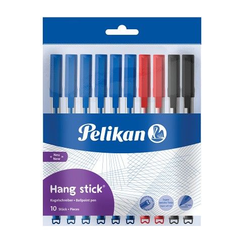 Hang stick, 6 ks modré,2 ks černé,2 ks červené,, kovový hrot o průměru 1 mm, jednorázové, Pelikan, Polybag