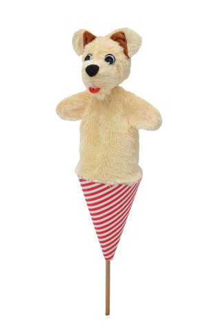 Textilní kornoutový maňásek, ovládaný dřevěnou tyčkou, kterou schováte celou postavičku do kornoutu. Hračka i dekorace.