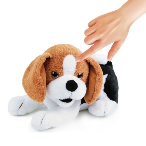 Roztomilý kamarád pes Bobík reaguje na pohlazení - začne vydávat realistické zvuky a zároveň pohybuje hlavou a ocáskem. Unikátní plyšový kamarád ve velikosti 25 cm bude úžasným dárkem pro jakoukoliv příležitost. Vyžaduje 3 ks baterií typu AA, které jsou součástí balení.