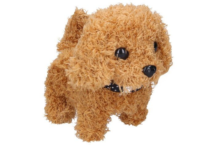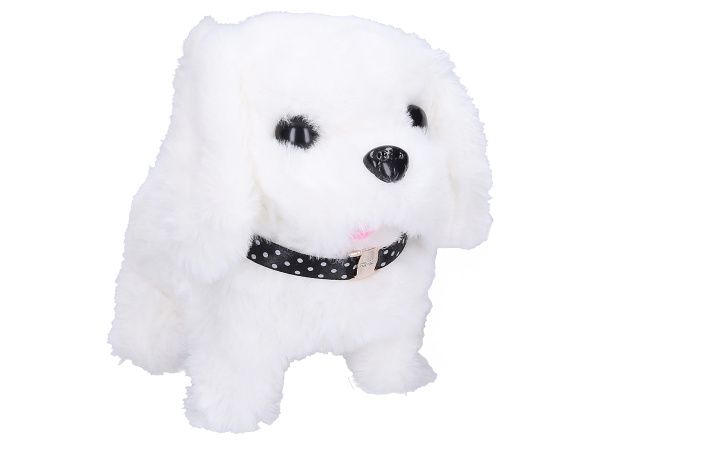 Pes chodící se zvukovými efekty. Rozměry 16x9x12 cm. Display box - 8 ks. 3 varianty - bílý, hnědý, žlutý. Chodí, hýbá ocasem a štěká. ON/OFF přepínač na spodní straně. 2xAA baterie nejsou součástí.