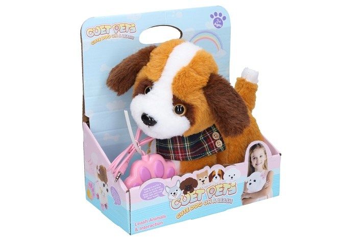 Pes chodící s efekty na kabel. Velikost 22 cm. Kabel s ovladačem se připojuje do otvoru na krku. Chůze, štěkání, vrtění ocasem, pohyb hlavy. Stiskem vodítka (ovladače) - chůze. Dotykem hlavy - efekty. Zatleskání - chůze. 3xAA baterie nejsou součástí. Přepínač ON/OFF na bateriové krabičce na spodní straně psa pod suchým zipem.