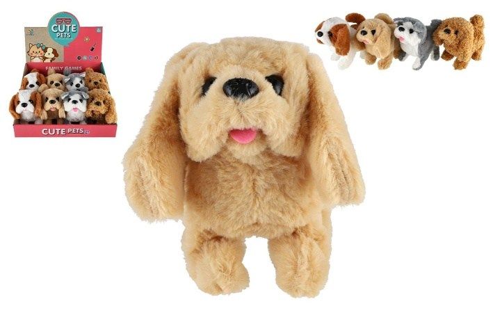 Pes chodící štěkající plyš/plast 18cm na baterie 4 druhy