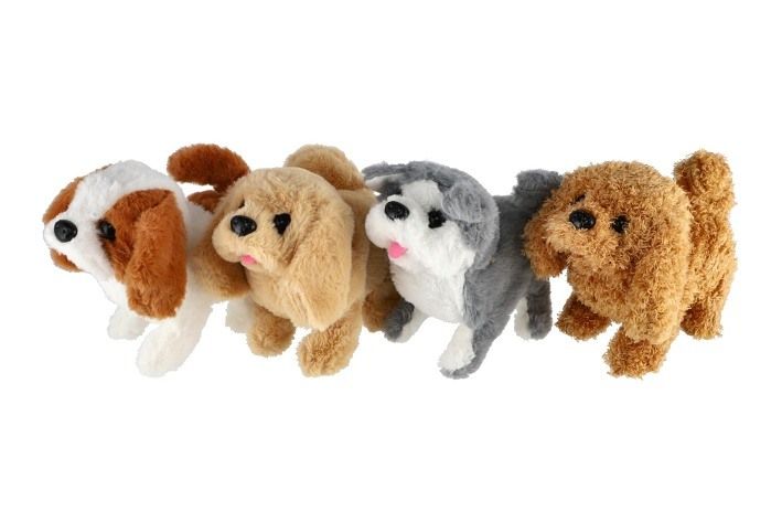 Pes chodící štěkající plyš/plast 18cm na baterie 4 druhy
