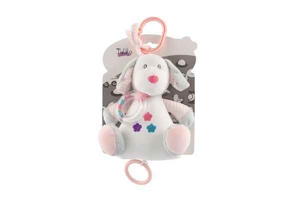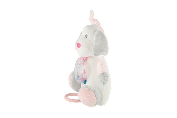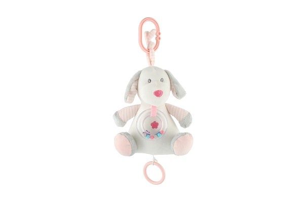 Pes chrastítko plyš 18cm závěs na postýl./koč. natahovací hrací strojek růžový na kartě