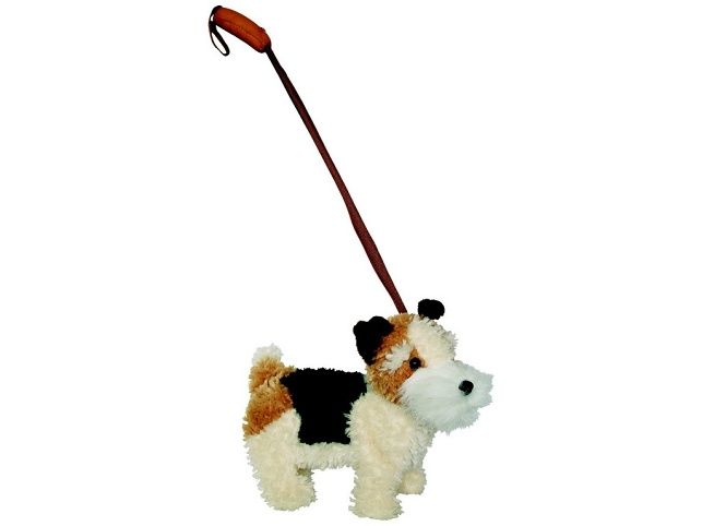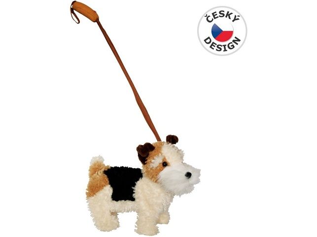 MaDe Pes Foxteriér s vodítkem a zvukem. Vezmi svého chlupatého kamaráda na procházku. Pejsek stiskem označeného místa na konci vodící tyče začne štěkat a zároveň chodit. V průběhu spolešné procházky několikrát vesele zavrtí ocáskem. Vodítko je v délce 80 cm. Výška pejska: 30 cm.