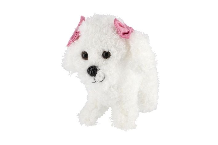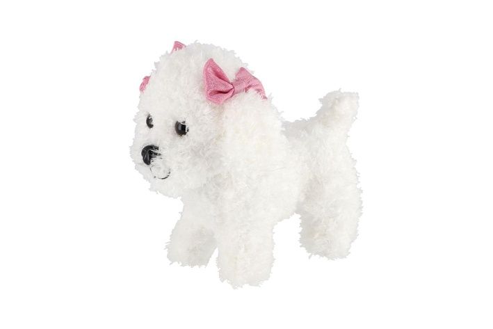 Pes/Pejsek stojící s mašlemi plyš 21cm bílý v sáčku 0+