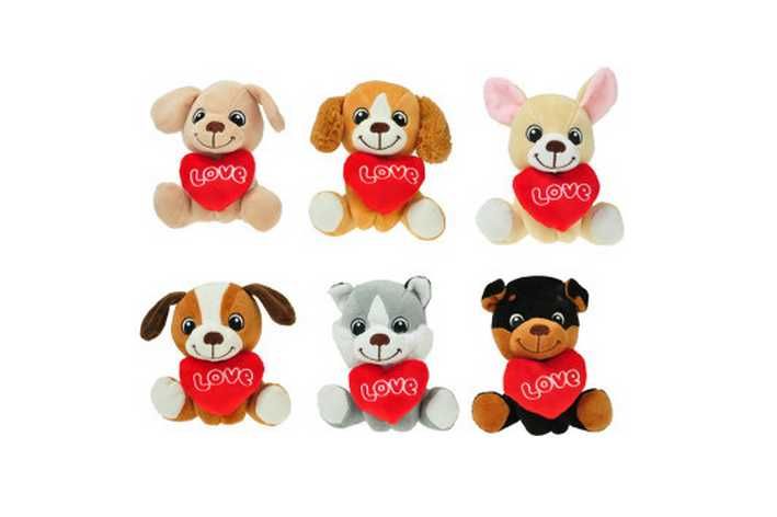 Pes plyšový 14cm sedící se srdíčkem