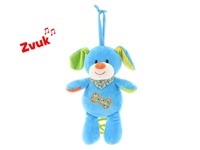 Plyšový pejsek s hracím strojkem na natažení je vhodný pro chlapečky i holčičky. Pejsek má velikost 29 cm. Pejsek má šňůrku na zavěšení nad postýlku a po natažení vydává příjemnou melodii.