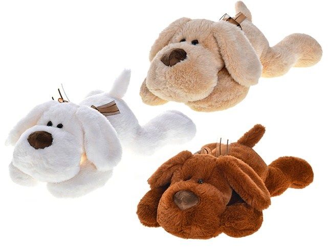 Pes plyšový 40cm ležící s mašlí 3barvy 0m+