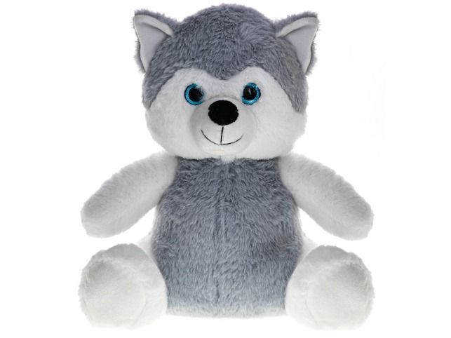 Pes plyšový bílo-šedý 35cm sedící 0m+ v sáčku