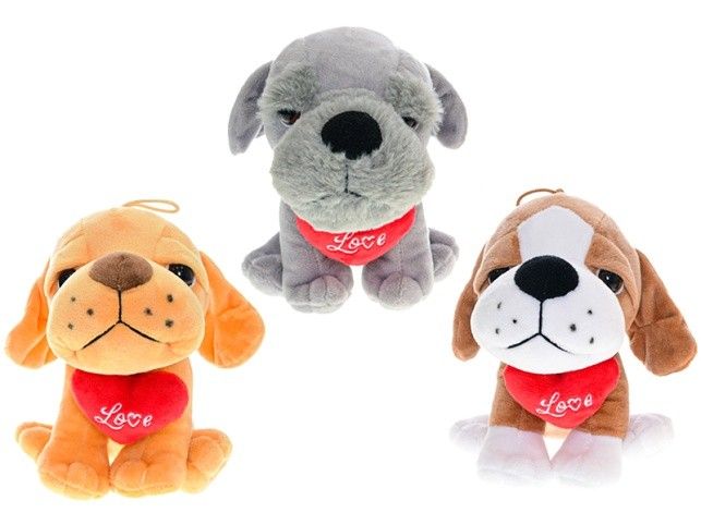 Pes plyšový sedící 15cm se srdíčkem 3barvy 0m+