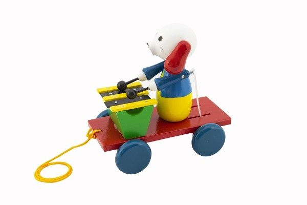 Dřevěný tahací pes s xylofonem pro malé děti. Vyrobeno z kvalitního dřeva. Velikost 20 cm.