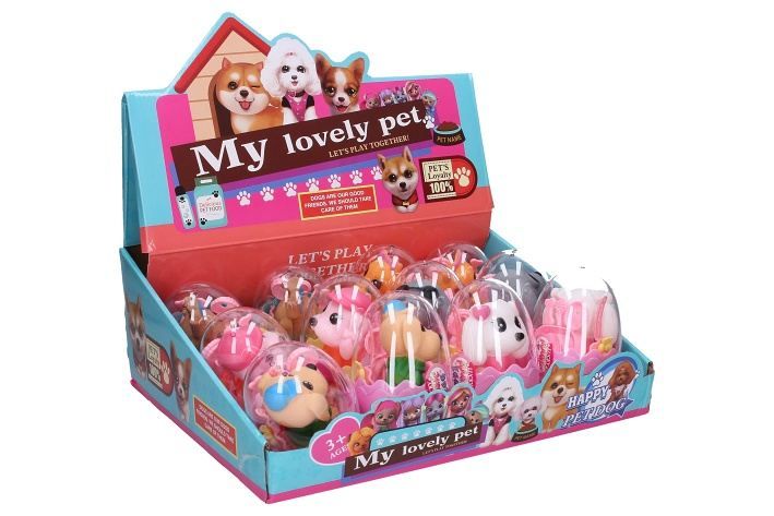 Pes ve vajíčku. 12 ks display box. Více variant.
