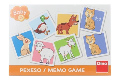 Děti si většinou pamatují hlavně to, co nemají - pexeso 24 ks. Na ty ostatní věci si vytrénují paměť hraním pexesa. Na velkých pevných kartičkách s obrázky zvířátek se naučí základy pexesa už malí prckové od 2 let.