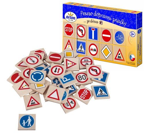 Pexeso, populární dětská stolní hra. Dopravní značky, jeden z předpokladů bezpečné orientace v dopravě! Děti se hravou formou naučí základní dopravní značky. Hra stimuluje paměť a podporuje rozvoj dětí, taktéž splňuje požadavky EU na bezpečnost hraček. Velikost kamene 40 x 40 x 6 mm.