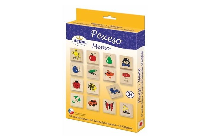 Pexeso dřevo společenská hra 40ks v krabici 17x25x2cm
