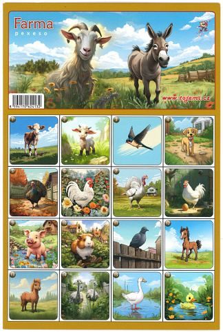 Pexeso s motivem zvířátek z farmy k vystřižení.