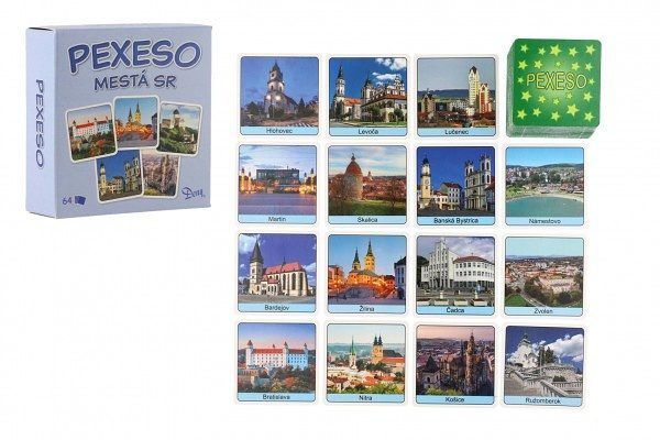 Společenská hra, při které si děti hravou formou trénují svou paměť. Hra se skládá z 64 kratiček s městy Slovenské republiky s fotkou a názvem. Pexeso má 32 dvojic. Poznej města Slovenska a u toho se pobav hrou!