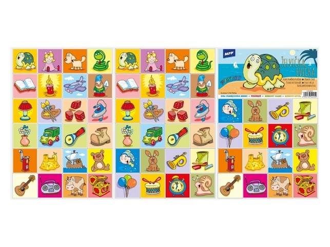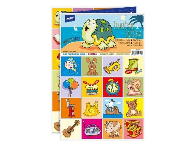 PEXESO je populární dětská stolní hra, která nikdy neomrzí a zapojit se můžou i dospělí. Věděli jste, že slovo PEXESO vzniklo souslovím slov PEKELNĚ SE SOUSTŘEĎ? Výborná učební pomůcka pro děti a rodiče. Naučte své děti poznávat různé věci a procvičujte jejich paměť. Tato hra je zabaví na dlouhé hodiny. Pexeso se skládá ze tří A4, na kterých najdete 64 kartiček malovaných věcí a návod ke hře. NÁVOD KE HŘE PEXESO: Pexeso mohou hrát nejméně dva hráči. Všechny rozstříhané kartičky zamíchají a rozloží obrázkem dolů do čtverce 8 x 8 kartiček. Nesmí se při tom dívat na obrázek. Hráči si určí pořadí hry. Hráč otočí dvě libovolné kartičky tak, aby si i ostatní spoluhráči mohli obrázky a jejich umístění zapamatovat. Pokud nemají kartičky stejné obrázky, otočí je a vrátí na původní místo. Pokračuje další hráč, který je na řadě. Jestliže objeví stejné obrázky, získává bod a obě kartičky vyřadí ze hry. Pokračuje do té chvíle, kdy otočí dva různé obrázky. Vyhrává hráč, který získá více bodů. PAPÍR: křída matná 350g + lamino lesk 1/1 VELIKOST HRACÍCH KARET: 51x51cm VAROVÁNÍ: Nevhodné pro děti do 3 let. Nebezpečí vdechnutí a spolknutí malých částic. Uvedená cena je za 1 ks.