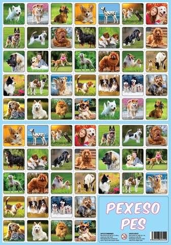 Společenská hra, při které si děti hravou formou trénují svou paměť. Hra se po rozstříhání skládá z 32 obrázkových dvojic. Pexeso 32 dvojic s obrázky pejsků.